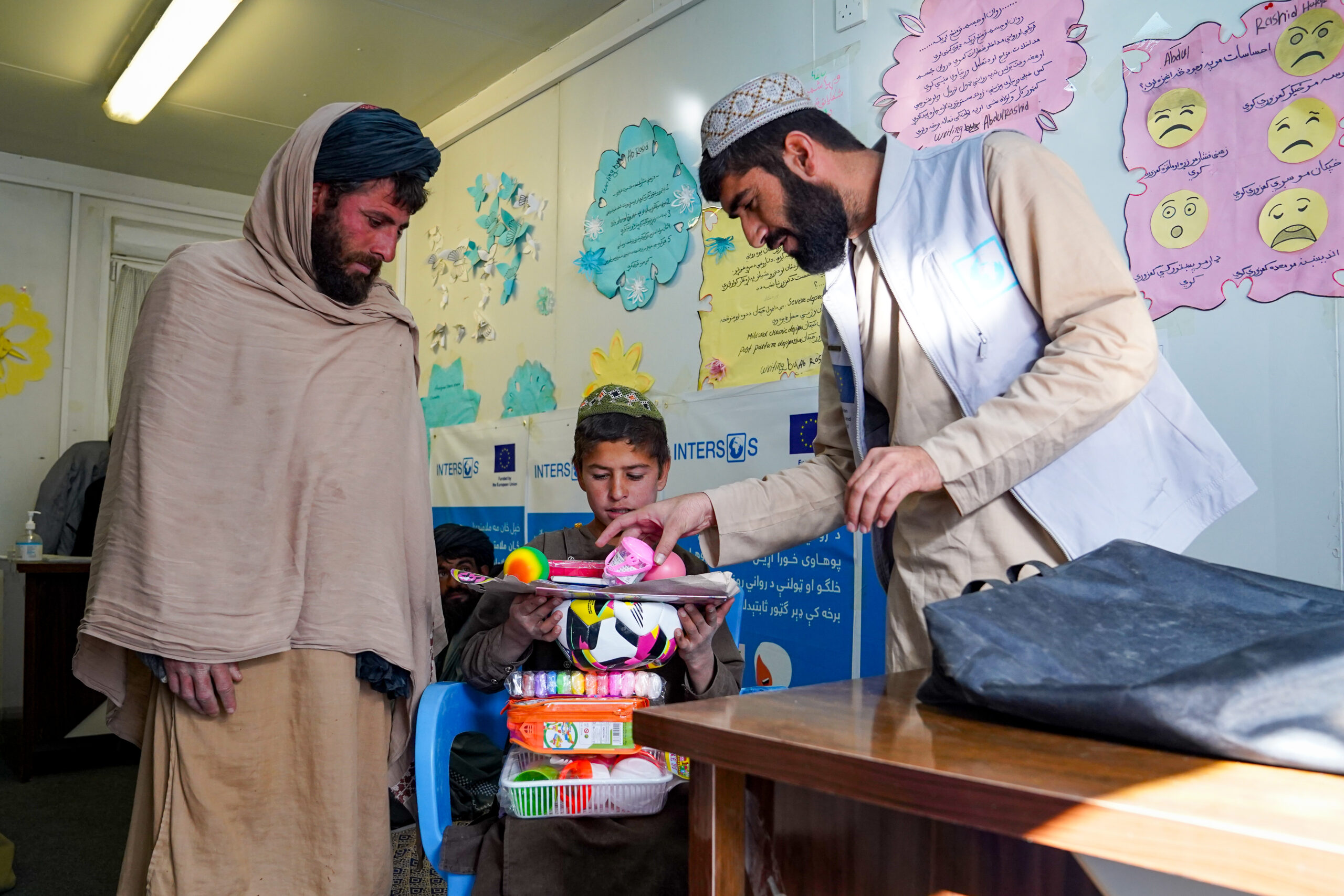 INTERSOS in Afghanistan fornisce servizi di protezione umanitaria attraverso un approccio basato sul lavoro nelle comunità e sull’integrazione tra diversi settori, come quelli della salute e della nutrizione. Le attività si rivolgono in particolar modo ai gruppi vulnerabili come bambini, donne, persone con disabilità e anziani e includono la gestione individuale dei casi, il supporto per la salute mentale e psicosociale, il supporto per le donne sopravvissute alla violenza di genere e la fornitura di spazi sicuri per i minori. Offriamo anche altre forme di supporto, come l’assistenza in denaro e la distribuzione di prodotti non alimentari, come i kit per l’inverno, i kit con i materiali didattici, i kit con i prodotti per l’igiene.